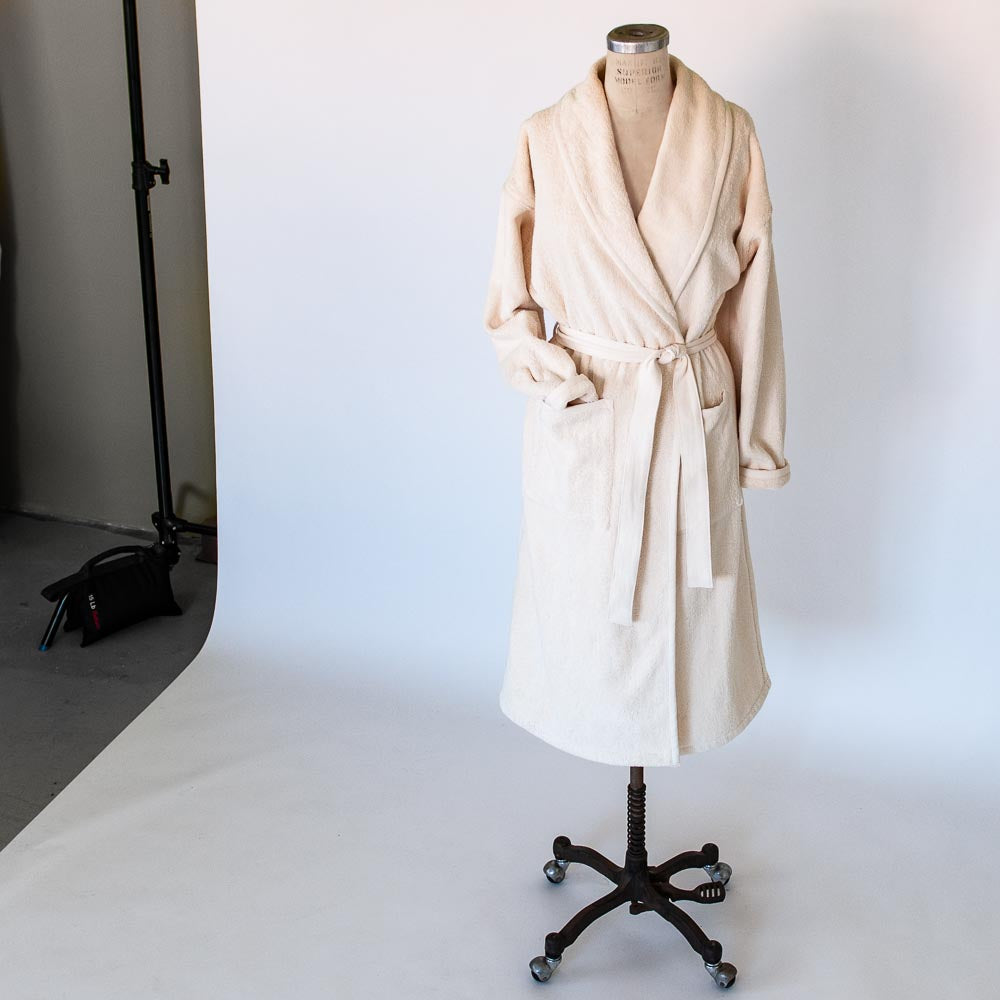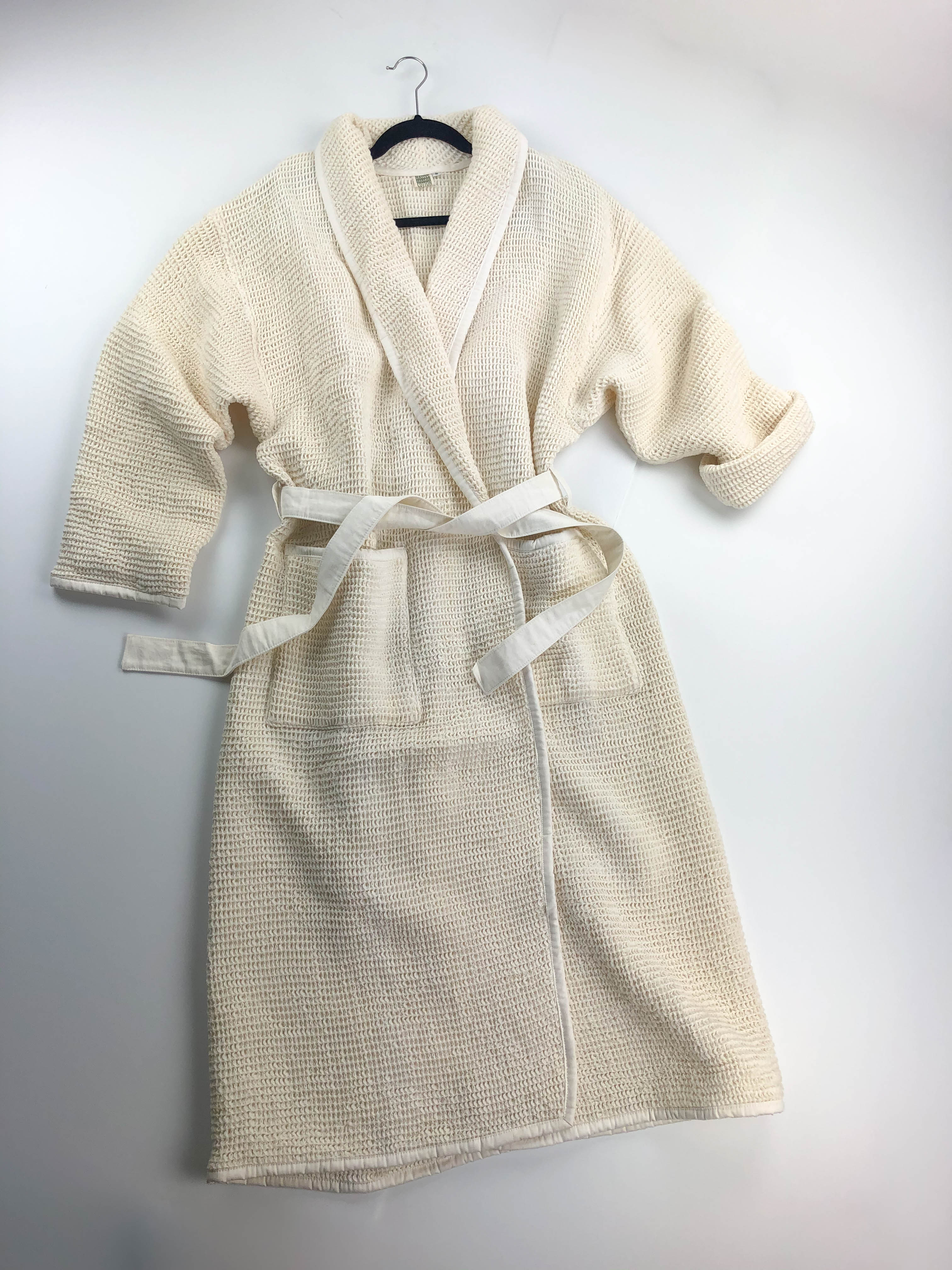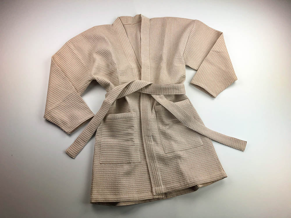 Available in waffle, gauze, terrycloth. Shawl collar or Kimono style.